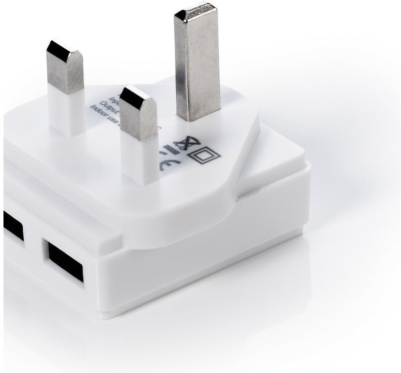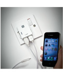 nabíječka pro Velkou Británii automaticky reguluje proud potřebný kdobíjení vhodné pro dobíjení tabletu a mobiluzároveň včetně mikro USB a 30pinového kabelu kompatibilní s Apple®: iPhone® 3 / 3GS / 4/ 4S / iPod Nano® 1. / 2. / 3. / 4. / 5. a 6. generace / iPodTouch® 1. a 2. generace / 4G / iPod