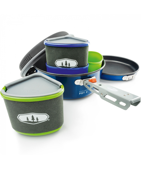 Bugaboo Ceramic Backpacker je sada nádobí s keramickým povrchem, vhodná pro dva dobrodruhy na souši i na vodě. Úprava PPG FUSION® PRO je technologie nové generace pro maximálně lesklý, hladký a odolný nepřilnavý povrch. Pokud už nějaký ten čas přemýšlíte o kompaktním nádobí v sadě se servírovacími doplňky pro 2 osoby, pak je volba Bugaboo Ceramic Backpacker na místě, protože je to přesně ta kuchařská sada, která to s jídlem myslí stejně vážně jako vy. Do této sady lze umístit také plynový vařič (např. GSI Pinnacle Canister Stove). Celý obsah sady lze díky chytrému systému skládání uložit do hrnce a chránit tak jednotlivé části před poškozením při převozu. Celá tato složená sada je navíc uložena ve vychytaném obalu s uchama, který díky pevnému dnu můžete použít jako umyvadlo nebo misku na přenos vody.