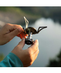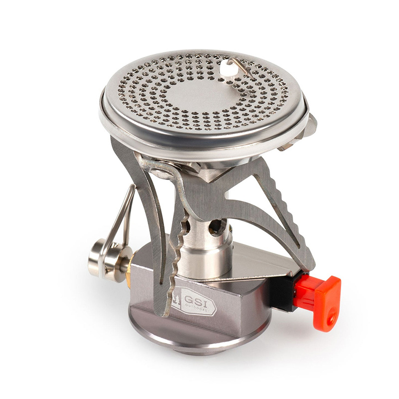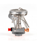 Ultra kompaktní nerezový výkonný plynový vařič s piezo podpalovačem, navržený pro maximální efektivitu vyváženosti mezi rychlostí varu a spotřebou plynu. Zoubkovaná rozkládací ramena poskytují dostatečně velkou stabilní a bezpečnou plochu pro vaření.