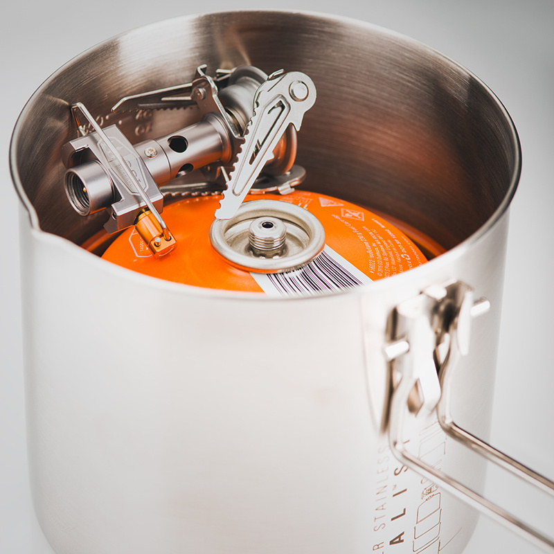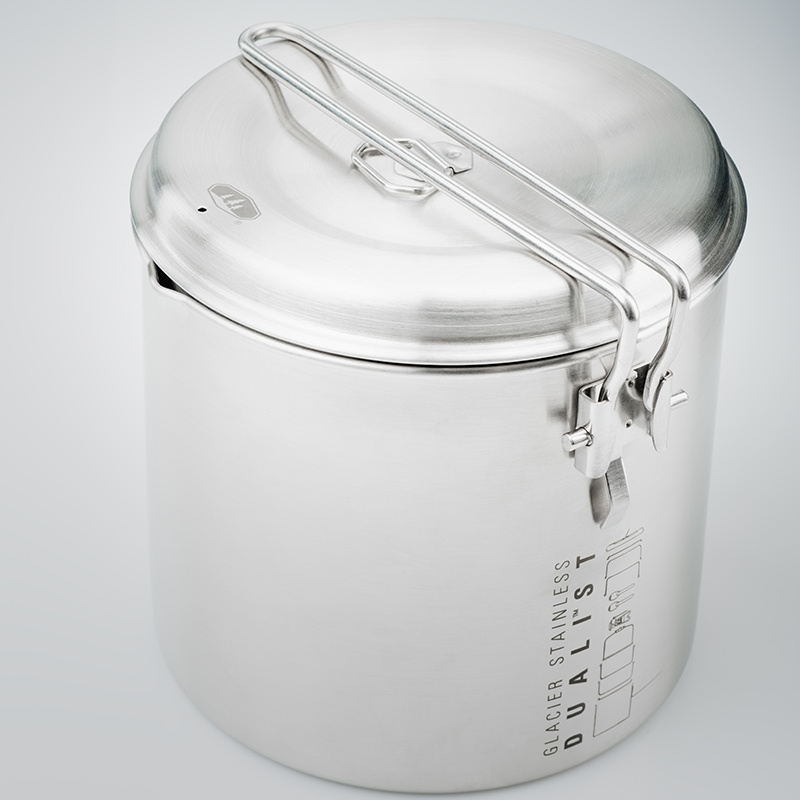 Glacier Dualist je sada nádobí pro 2 osoby s hlavním 1,8 litrovým rendlíkem z vysoce kvalitní nerezové oceli Glacier Stainless. Součástí sady jsou 2 misky, 2 hrnky s děrovaným víkem pro pití, 2 skládací vidličkolžíce, perforovaná poklička pro scezení vody a obal na celou sadu, který slouží jako nádoba na vodu nebo umyvadlo. Celá sada se dá do kastrůlku složit tak šikovně, že zbyde místo pro plynový vařič GSI Outdoors Pinnacle Canister Stove a plynovou kartuši GSI Outdoors Isobutane Fuel 230g, která však stejně jako vařič není součástí balení.