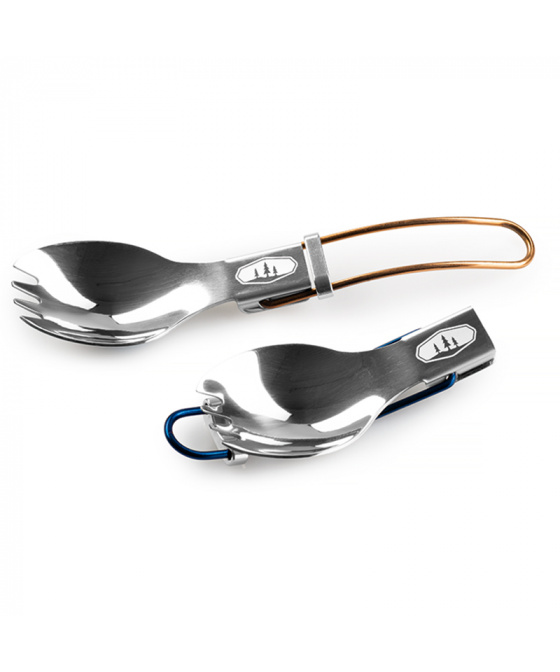Glacier Folding Fork je skládací lžícovidlička z nerezové oceli, kterou snadno sbalíte do každé campingové sady či hrnku. Celková délka lžícovidličky po složení je 165 mm.