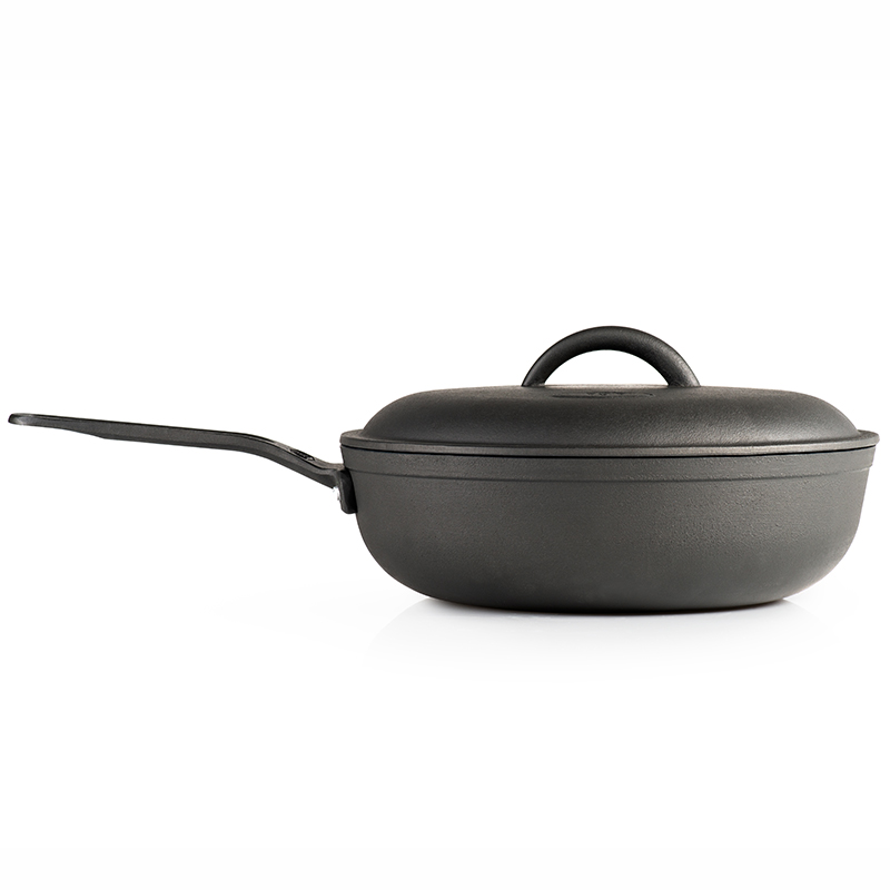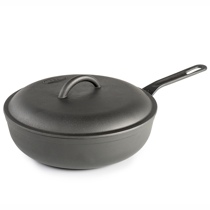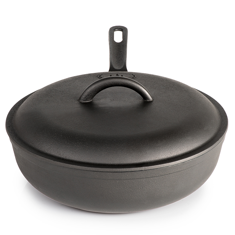 Hluboká litinová pánev s poklicí, vhodná pro vaření venku i doma. U GSI Outdoors Guidecast Deep Frypan jistě kromě perfektního rozvodu tepla oceníte i nízkou hmotnost, která je o 20-40% nižší než běžně prodávané litinové pánve. Nitridovaný povrch trouby zajišťuje stálou odolnost proti korozi. Pánev je vhodná pro všechny typy varných povrchů, včetně indukce.