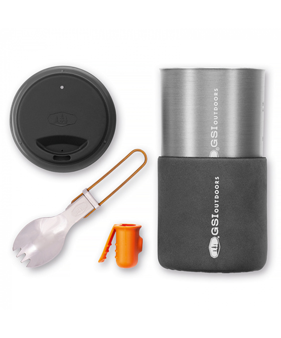 Nejlehčí a nejmenší sada nádobí z řady Halulite pro jednoho cestovatele. Minimalistické rozměry a lehkost pro přípravu teplých nápojů a jídel pro jednu osobu dělají z této sady výborného pomocníka do náročných podmínek. Sada obsahuje kromě 0,6 l hrnečku také silikonovou chňapku pro snadné uchopení horkého hrnečku. Poklička / víčko lze použít zároveň jako pítko. Po uvaření lze celý hrneček umístit do neoprenového obalu, ve kterém je během vaření možné přenášet vodu. Součástí je také nově přepracovaná vidličkolžíce GSI Folding Spork. Celá sada se dá do kastrůlku složit tak šikovně, že zbyde místo pro plynový vařič GSI Outdoors Pinnacle Canister Stove a plynovou kartuši GSI Outdoors Isobutane Fuel 110g, která však stejně jako vařič není součástí balení.
