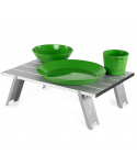 Micro Table Plus je skládací kempingový stoleček pro 1 osobu vhodný pro venkovní servírování. Micro Table Plus má robustní hliníkovou konstrukci s odolností proti ohni a žáru. Maximální nosnost stolku je 9 kg. Pracovní plocha 40 x 29 cm je dostatečně velká pro každou snídani, oběd i večeři v přírodě. Stolek jednoduše složíte do přepravní tašky, která je součástí.