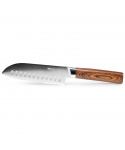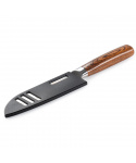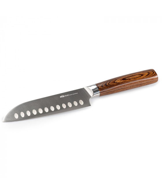 Šéfkuchařský nůž Santoku s délkou ostří 15 cm a rukojetí z recyklovaného dřeva s ECO laminací. Pořádný nůž by měl mít své místo v základní výbavě každého kuchaře. Skvěle vyvážený nůž GSI Rakau Chef Knife si oblíbíte jeho lehkostí, propracovaným designem a tvrdostí prvotřídní nerezové oceli. Součástí je odolná ochranná krytka z recyklovaného polypropylenu.