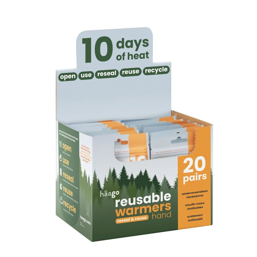 Opakovaně použitelné ohřívače rukou. Vydrží hřát až 8 hodin a je možné je použít několikrát během 10 dnů. Ohřívač vyjmete z obalu a aktivujete. Po použití vrátíte zpět do obalu a vzduchotěsně uzavřete. Pokud například ohřívač používáte po dobu 1 hodiny a potom ho odložíte do obalu, můžete ho opět v průběhu 7 hodin vyjmout a stále bude hřát.