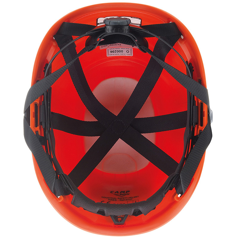Špičková pracovní přilba, designována pro dosažení maximálního pohodlí, funkčnosti a bezpečnosti. Robustní plášť je vyroben ze směsi ABS plastu a polykarbonátu, který splňuje certifikaci EN 397+LD+440 V a.c.+ -20°C+ MM + EN 50365 (ochrana před úrazy elektrickým proudem a roztaveným kovem). Vnitřní plášť absorbující energii je vyroben z EPS pěny s vysokou hustotou. Systém nastavitelných řemínků lze velice snadno přizpůsobit tvaru hlavy. Vertikální polohu vnitřního upínacího systému lze nastavit jak vpředu tak vzadu. Helma Ares pro snadné a rychlé nastavení využívá stahovací kolečko, které se snadno ovládá jednou rukou. Pro zmenšení vnitřku přilby je k dispozici sada dalších vnitřních výstelek, které jsou součástí balení. Pracovní přilba CAMP Ares je standardně vybavena polstrováním pohlcujícím pot. Součástí balení je také vodu odpudivá výměnná vložka z pěny. Dále je přilba vybavena upevňovacími body pro připevnění sluchátek, hledí (CAMP Ares Visor) a svítilny. U přilby Ares je možné odepnout řemínek pod bradou a používat ji na pozemní práce. Hlavní přezka je konstruovaná s pojistkou, která přezku uvolní při použití síly 15-25kg. Ve stavebnictví se k výrobě bezpečnostních helem nepoužívá kov, aby se předešlo problémům s korozí nebo vodivostí. Přilba je k dispozici v několika barvách a jedné univerzální velikost.