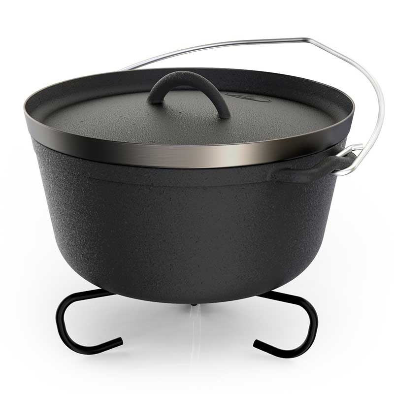 Litinová holandská trouba s objemem 4,7l pro opravdové gurmány. Guidecast Dutch Oven nabízí výborný rozvod tepla a navíc je o 30% lehčí než konvenční litiny. Nitridovaný povrch trouby zajišťuje stálou odolnost proti korozi. Mezi další výhody patří leštěné dno, které umožňuje vaření na sporáku, ohni, v troubě i na indukční desce. Dále pak pohodlné rukojeti pro snadnou manipulaci či zavěšení vašich kuchařských nástrojů. Holandskou troubu je při použití v ohni možné zapustit do žhavých uhlíků nebo jí použít jako zavěšený kotlík nad oheň.