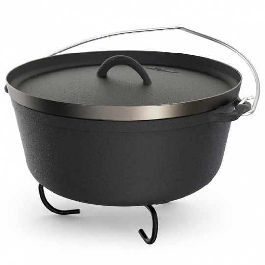 Litinová holandská trouba s objemem 4,7l pro opravdové gurmány. Guidecast Dutch Oven nabízí výborný rozvod tepla a navíc je o 30% lehčí než konvenční litiny. Nitridovaný povrch trouby zajišťuje stálou odolnost proti korozi. Mezi další výhody patří leštěné dno, které umožňuje vaření na sporáku, ohni, v troubě i na indukční desce. Dále pak pohodlné rukojeti pro snadnou manipulaci či zavěšení vašich kuchařských nástrojů. Holandskou troubu je při použití v ohni možné zapustit do žhavých uhlíků nebo jí použít jako zavěšený kotlík nad oheň.