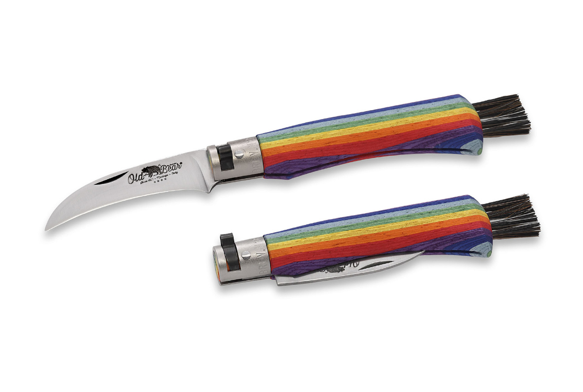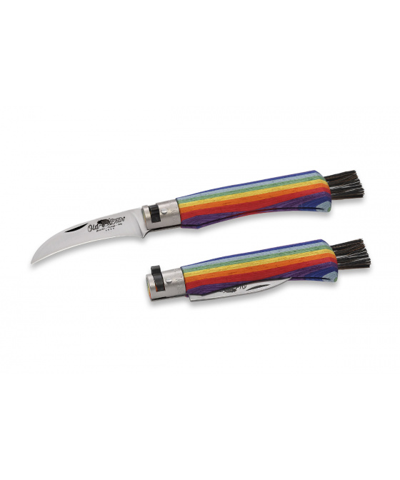 Houbařský nůž s rukojetí z topolového laminátu v barvách duhy se štětinami s koňských žíní.Více