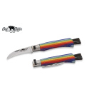 Houbařský nůž s rukojetí z topolového laminátu v barvách duhy se štětinami s koňských žíní.