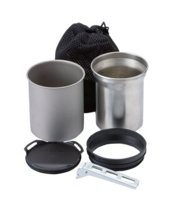 Lehký hrnek na přípravu kávy nebo čaje z nerezové oceli, který můžete použít jako dva jednostěnné hrnky nebo jeden dvoustěnný.