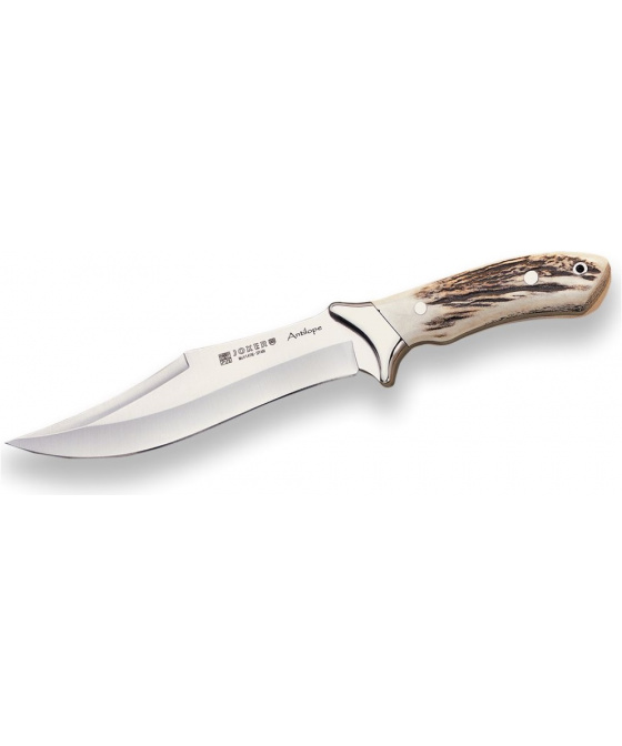 lovecký a outdoorový nůž, který je moderní verzí klasického bowie nože vyrobeno ve Španělsku jako originální produkt Denomination of Origin of Albacete (Spain) nůž je dobře vyvážený, v ruce lehký, ale čepel má v sobě dostatečnou sílu, aby zvládla náročnější sekání fulltang čepel typu drop point o délce 19.5 cm, šířce 3.6 cm a tloušťce 4.7 mm má velmi dlouhý a ostrý břit materiál čepele: molybden vanadiová ocel 1.4116 s tvrdostí 56-58 HRC saténový povrch čepele rukojeť z parohoviny má jedinečný vzor a je ergonomicky navržena tak, aby dobře padla do ruky otvor pro upevnění šňůrky záštita inox vysoce kvalitní silné kožené pouzdro v hnědém provedení