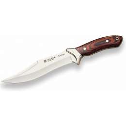 lovecký a outdoorový nůž, který je moderní verzí klasického bowie nože vyrobeno ve Španělsku jako originální produkt Denomination of Origin of Albacete (Spain) nůž je dobře vyvážený, v ruce lehký, ale čepel má v sobě dostatečnou sílu, aby zvládla náročnější sekání fulltang čepel typu drop point o délce 19.5 cm, šířce 3.6 cm a tloušťce 4.7 mm má velmi dlouhý a ostrý břit materiál čepele: molybden vanadiová ocel 1.4116 s tvrdostí 56-58 HRC saténový povrch čepele rukojeť z červeného tropického dřeva stamina má jedinečný vzor a je ergonomicky navržena tak, aby dobře padla do ruky otvor pro upevnění šňůrky záštita inox vysoce kvalitní silné kožené pouzdro v hnědém provedeníVíce