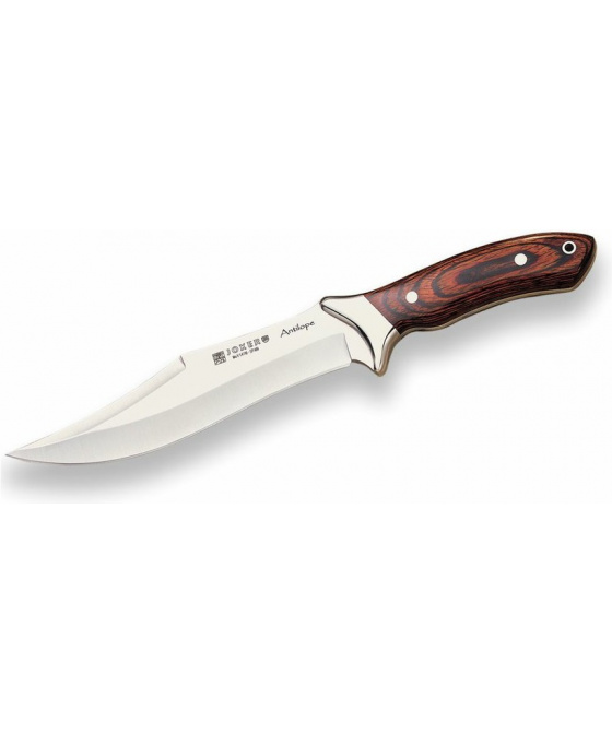 lovecký a outdoorový nůž, který je moderní verzí klasického bowie nože vyrobeno ve Španělsku jako originální produkt Denomination of Origin of Albacete (Spain) nůž je dobře vyvážený, v ruce lehký, ale čepel má v sobě dostatečnou sílu, aby zvládla náročnější sekání fulltang čepel typu drop point o délce 19.5 cm, šířce 3.6 cm a tloušťce 4.7 mm má velmi dlouhý a ostrý břit materiál čepele: molybden vanadiová ocel 1.4116 s tvrdostí 56-58 HRC saténový povrch čepele rukojeť z červeného tropického dřeva stamina má jedinečný vzor a je ergonomicky navržena tak, aby dobře padla do ruky otvor pro upevnění šňůrky záštita inox vysoce kvalitní silné kožené pouzdro v hnědém provedení