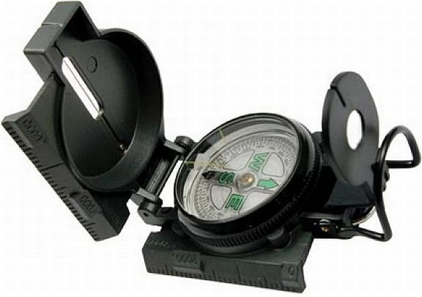 ženijní zaměřovací buzola typu Ranger střelka uložena v kapalině měřítko korpus z tmavé eloxované aluzinkové slitiny kovové poutkoVíce