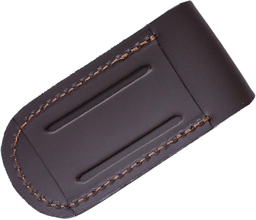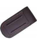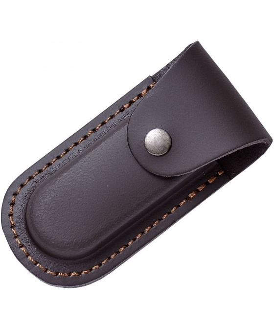 hladké kožené pouzdro pro kapesní zavírací nože uzavírání na druk prošívaný okraj poutko na opasek s průvlekem o velikosti 60 mm ručně vyrobeno ve ŠpanělskuVíce