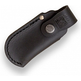 hladké kožené pouzdro pro kapesní zavírací nože uzavírání na druk jednostranně prošívaný okraj s kovovým drukem nýtované poutko na opasek s průvlekem o velikosti 65 mm ručně vyrobeno ve ŠpanělskuVíce