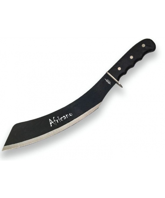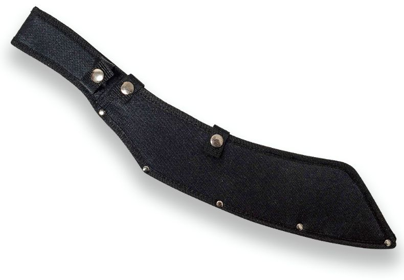 -španělská mačeta v kvalitním nylonovém pouzdru se zapínáním na tři druky -nerezová částečně černěná čepel s oboustranně broušeným ostřím -tloušťka čepele 3 mm -pryžová ergonomicky tvarovaná rukojeť s nýty -záštita zabraňující sklouznutí a poranění prstů