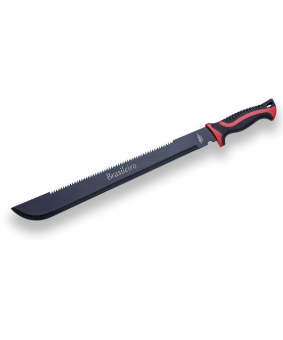 -španělská mačeta s kombinovaným ostřím -nerezová černěná čepel s oboustranně broušeným ostřím -ozubená horní část čepele -délka čepele 46 cm -pryžová ergonomicky tvarovaná rukojeť odolná proti skluzu -otvor pro upevnění šňůrky -nylonové pouzdro s poutkem pro upevnění k opasku nebo popruhu