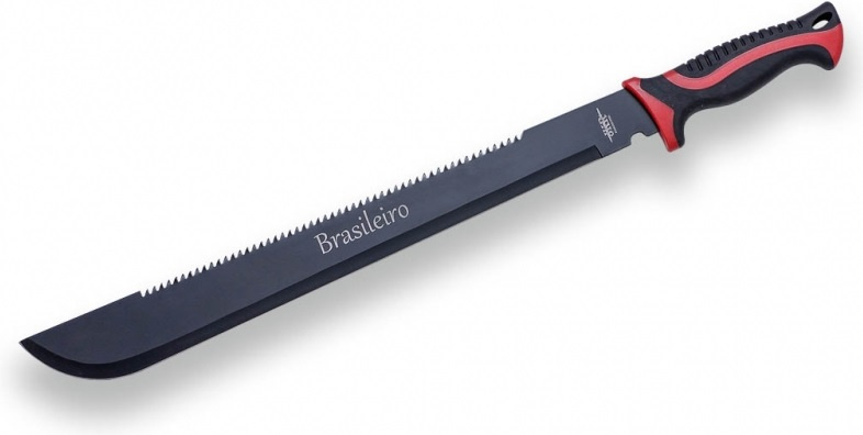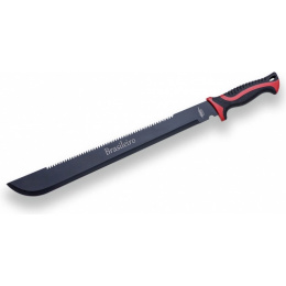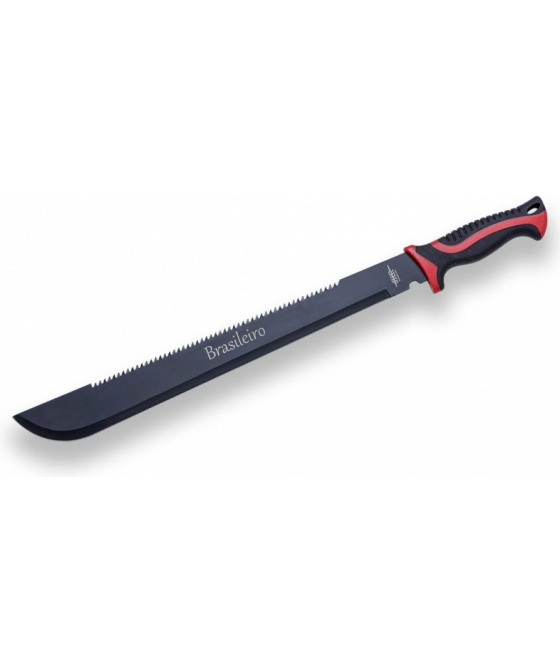 španělská mačeta s kombinovaným ostřím nerezová černěná čepel s oboustranně broušeným ostřím ozubená horní část čepele délka čepele 46 cm pryžová ergonomicky tvarovaná rukojeť odolná proti skluzu otvor pro upevnění šňůrky nylonové pouzdro s poutkem pro upevnění k opasku nebo popruhuVíce