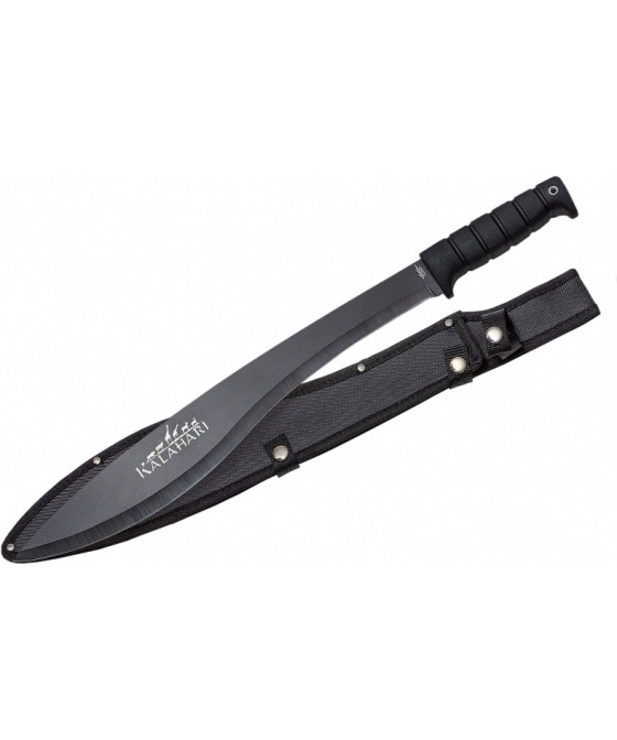 mačeta v kvalitním nylonovém pouzdru na druky nerezová černěná čepel o délce 42 cm s oboustranně broušeným ostřím tloušťka čepele 5 mm plastová rukojeť o délce 13 cm s pogumovaným povrchem a drážkami zabraňujícími skluzu otvor pro upevnění šňůrky pouzdro s poutkem na opasek nebo na popruh batohu