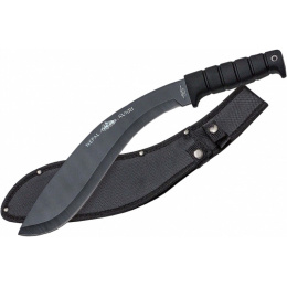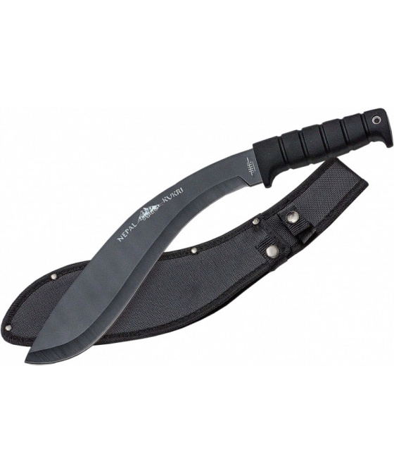mačeta Kukri v kvalitním nylonovém pouzdru na druky nerezová černěná čepel o délce 30 cm s jednostranně broušeným ostřím tloušťka čepele 4 mm plastová rukojeť o délce 12 cm s pogumovaným povrchem a drážkami zabraňujícími skluzu otvor pro upevnění šňůrky pouzdro s poutkem na opasek nebo na popruh batohuVíce