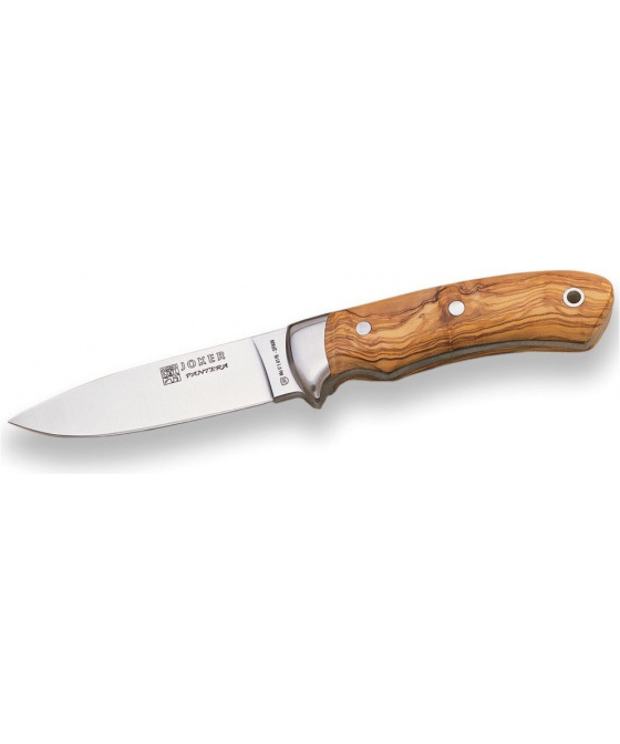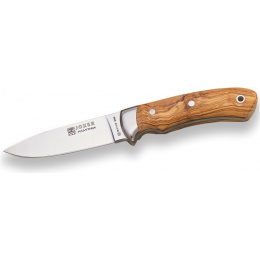 outdoorový a sportovní nůž navržený pro výlety do přírody, kempování, nácvik přežití a jiné bushcraft a venkovní aktivity fulltang čepel o délce 9.5 cm materiál čepele: molybden vanadiová ocel 1.4116 s tvrdostí 56-58 HRC záštita z nerezové oceli rukojeť z olivového dřeva s jedinečným vzorem otvor pro upevnění šňůrky vysoce kvalitní silné kožené pouzdro v hnědém provedení vyrobeno ve Španělsku