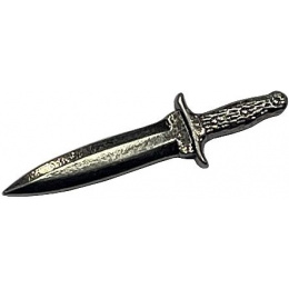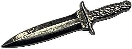 ozdobný pin do klopy s motivem dýky kovový zadní úchyt hrotu špendlíku pro pevnější uchycení do klopy saka, kabátu, košile nebo jiného oděvu originální dárek z kovu se starostříbrným saténovým povrchemVíce