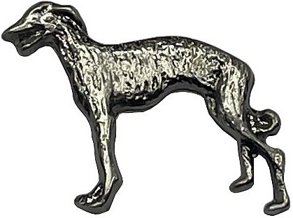 ozdobný pin do klopy s motivem loveckého psa kovový zadní úchyt hrotu špendlíku pro pevnější uchycení do klopy saka, kabátu, košile nebo jiného oděvu originální dárek z kovu se starostříbrným saténovým povrchemVíce