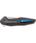 kapesní zavírací nůž z kolekce PRO s čepelí drop point 80mm s nástrojové nerezové oceli D2 ovladatelnou pomocí kolíčku na čepeli nebo flipperu, pojistkou liner lock a střenkou z kombinace uhlíkového vlákna a G-10 s otvorem na paracord kapesní zavírací nůž z kolekce PRO čepel drop point o délce 80 mm a tloušťce 3.3 mm je vyrobená z nástrojové nerezové oceli D2, která vyniká vyšší tvrdostí, dobrou houževnatostí a odolností proti opotřebení kombinovaný pohyb čepele pomocí kolíčku na čepeli a flipperu (ploutve), po otevření slouží jako záštita zabraňující sklouznutí prstů na čepel nože kuličkové ložisko v mechanice zavíráku pro zajištění plynulosti pohybu pojistka typu liner lock střenka z kombinace uhlíkového vlákna a materiálu G-10, velmi odolného kompozitního materiálu z vrstveného lamináta a skelných vláken nerezová spona pro uchycení k opasku otvor pro upevnění paracordu baleno v dárkovém boxu s magnetickým uzavíráním, jehož součástí je čistící hadřík a textilní pouzdérko se stahovací šňůrkou pro uložení vyrobeno s využitím automatizovaných CNC obráběcích strojů čepel nerezová ocel D2 tloušťka čepele 3.3 mm délka čepele 80 mm střenka uhlíkové vlákno / G-10 délka střenky 117 mm celková délka 197 mm hmotnost 116 g pouzdro ne