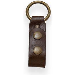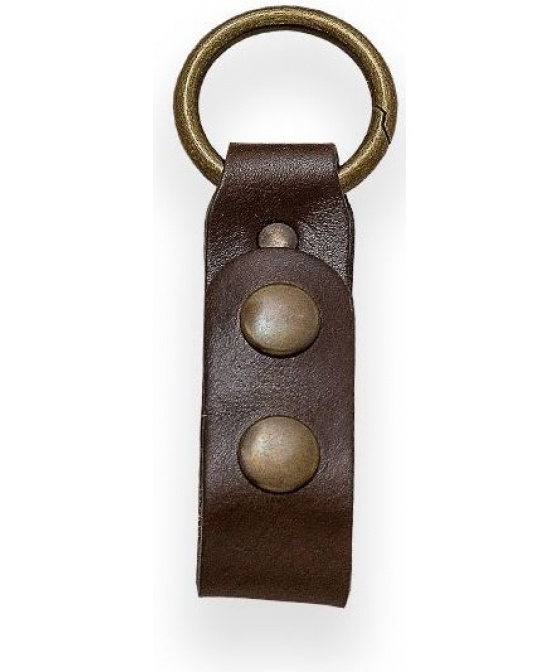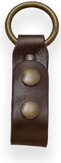 kožený závěs pro upevnění k pouzdrům outdoorových a bushcraft nožů kovová karabinka v podobě kroužku o průměru 35 mm uzavírání na dva druky