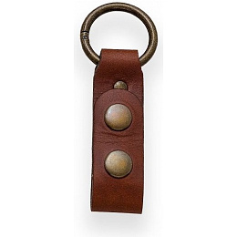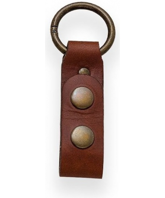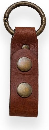 kožený závěs pro upevnění k pouzdrům outdoorových a bushcraft nožů kovová karabinka v podobě kroužku o průměru 35 mm uzavírání na dva druky