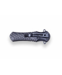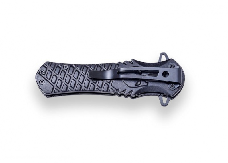 -vystřelovací nůž vybavený pružinou, která zajišťuje otevření čepele -černá střenka z aluminia -jednou rukou ovladatelná černěná čepel s výstupkem pro rychlé otevření -čepel jištěná pojistkou liner lock zabraňující náhlému sklopení -ocelový klip na opasek -nylonové pouzdro na suchý zip s poutky pro horizontální i vertikální upevnění k opasku nebo popruhu