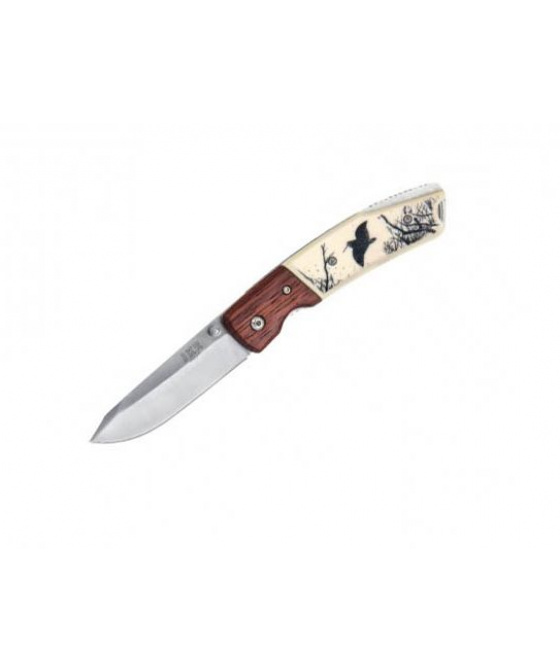 -nůž se sklopnou čepelí a motivem bekasíny