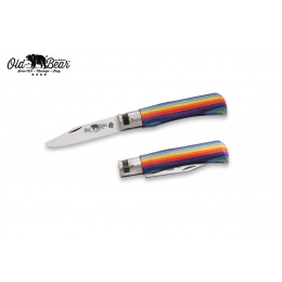 Juniorský kapesní nůž s pestrou variantou rukojeti z vícevrstvého laminátu, kulatou špičkou a nabroušeným ostřím.