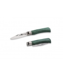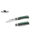 Juniorský kapesní nůž se zelenou variantou rukojeti z vícevrstvého laminátu, kulatou špičkou a nabroušeným ostřím.