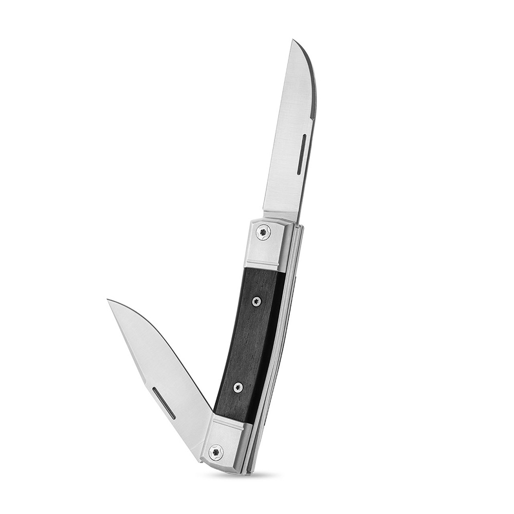 BestMAN s dvojicí čepelí z ocele M390 a rukojetí z ebenového dřeva.