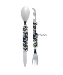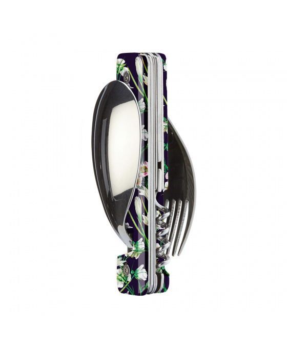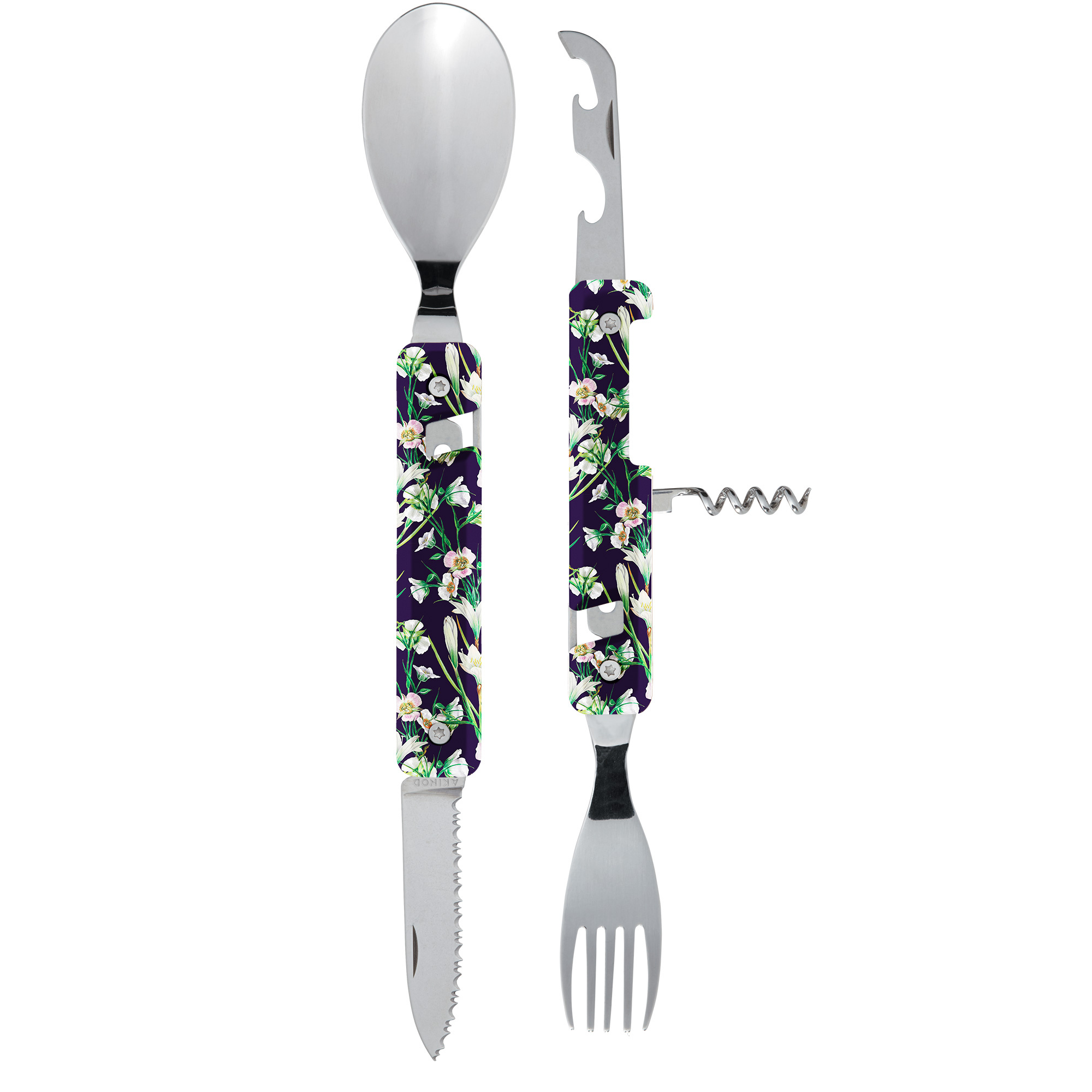 Cestovatelský příborový set s vývrtkou v moderním designu se vzorek popínavé rostliny svlačec polní.