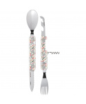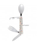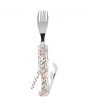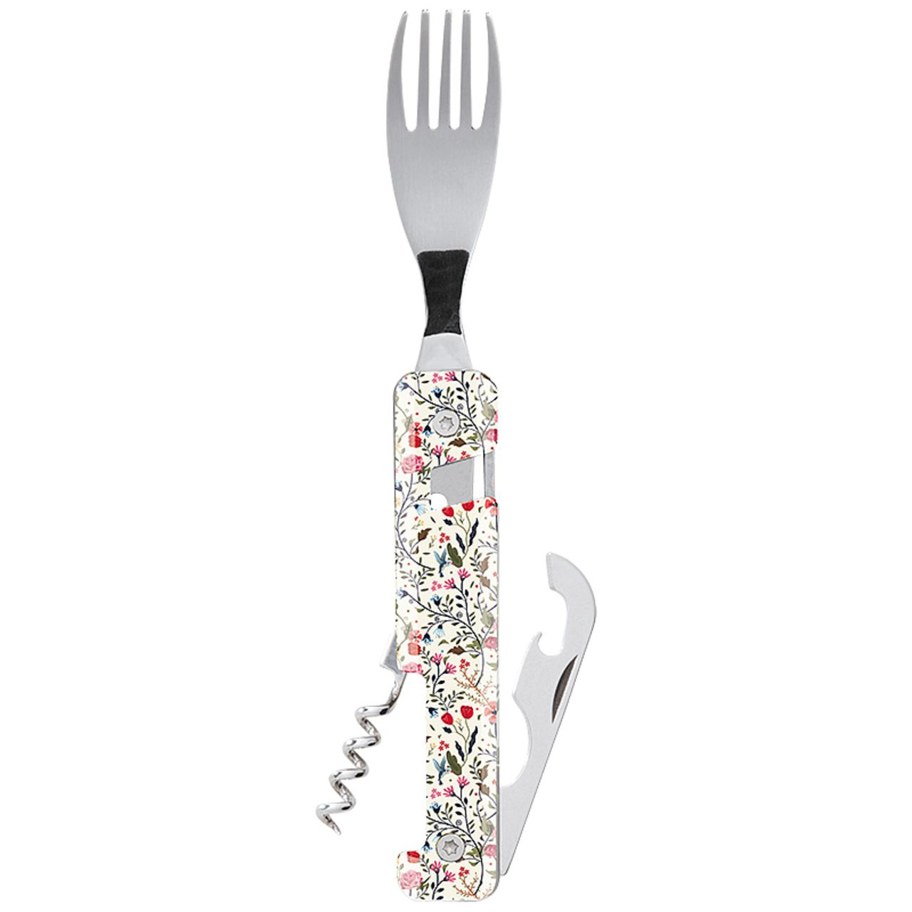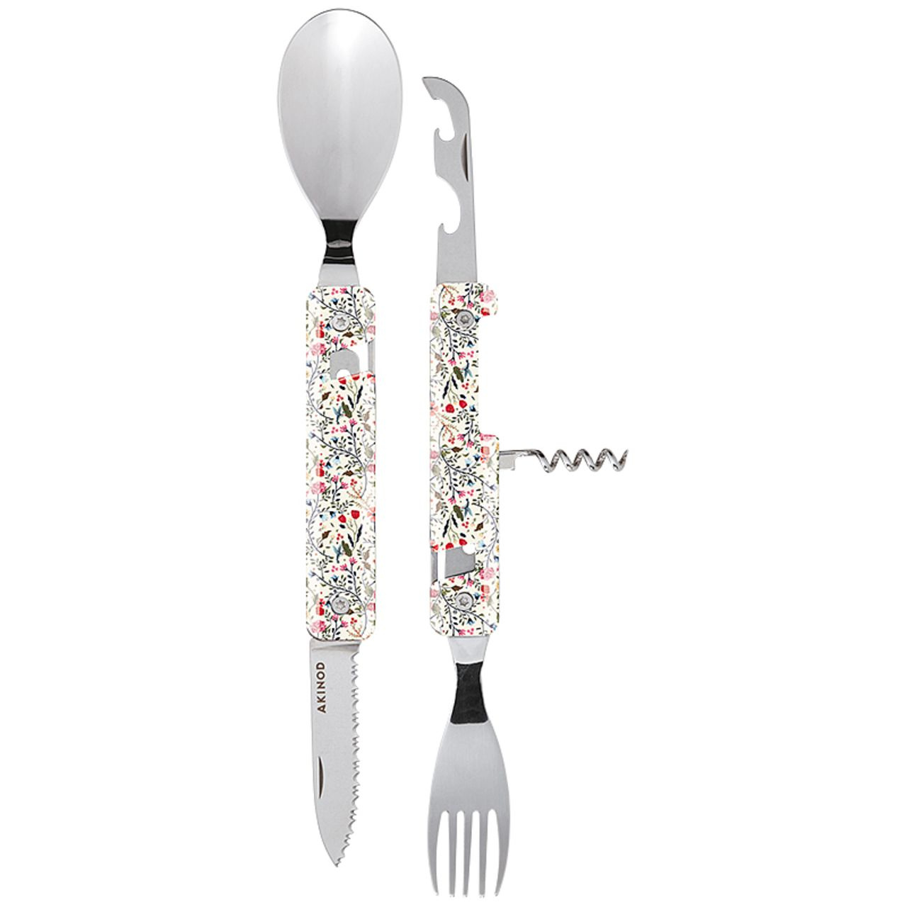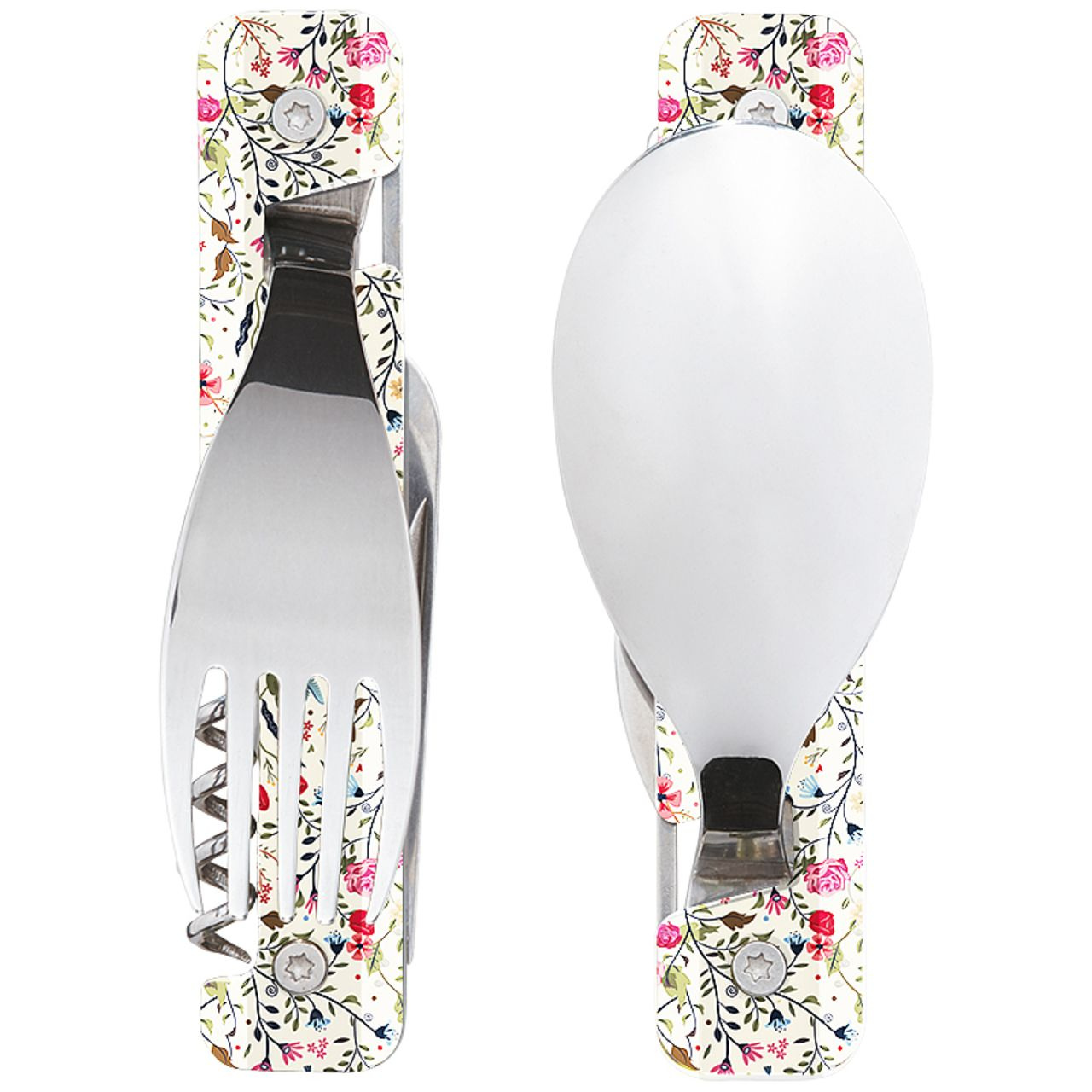 Cestovatelský příborový set s vývrtkou v moderním designu s vyobrazením květinové louky.