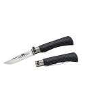 Kapesní nůž s poniklovaným mosazným pojistným kroužkem, čepelí délky 7 cm z nerezové ocele W.1,4060 Nitrogen a rukojetí z černého vrstveného dřeva s ALU ornamenty