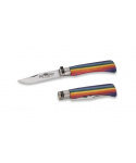 <p>Kapesní nůž s ocelovým pojistným kroužkem, čepelí délky 8 cm z nerezové ocele a rukojetí z dřevěného laminátu se vzorem "Rainbow". Součástí balení je i torx pro utahování a povolování šroubu pro vyhovující otevírání a zavírání čepele.</p>