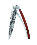 Stylový ultralehký nůž Deejo z kolekce Mirror se střenkou z exotického dřeva coralwood a čepelí s vysokým leskem a tetováním "Jungle".