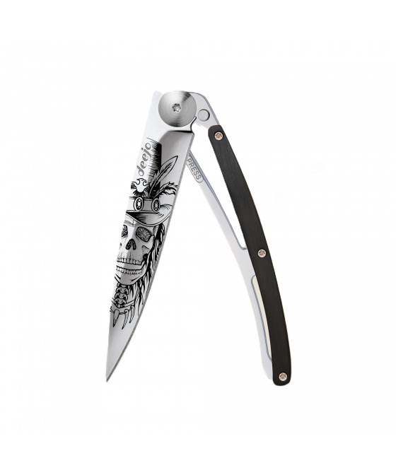 Popis Kapesní nůž Deejo 1AB103 Tattoo Mirror 37g ebony wood Dandy Skull