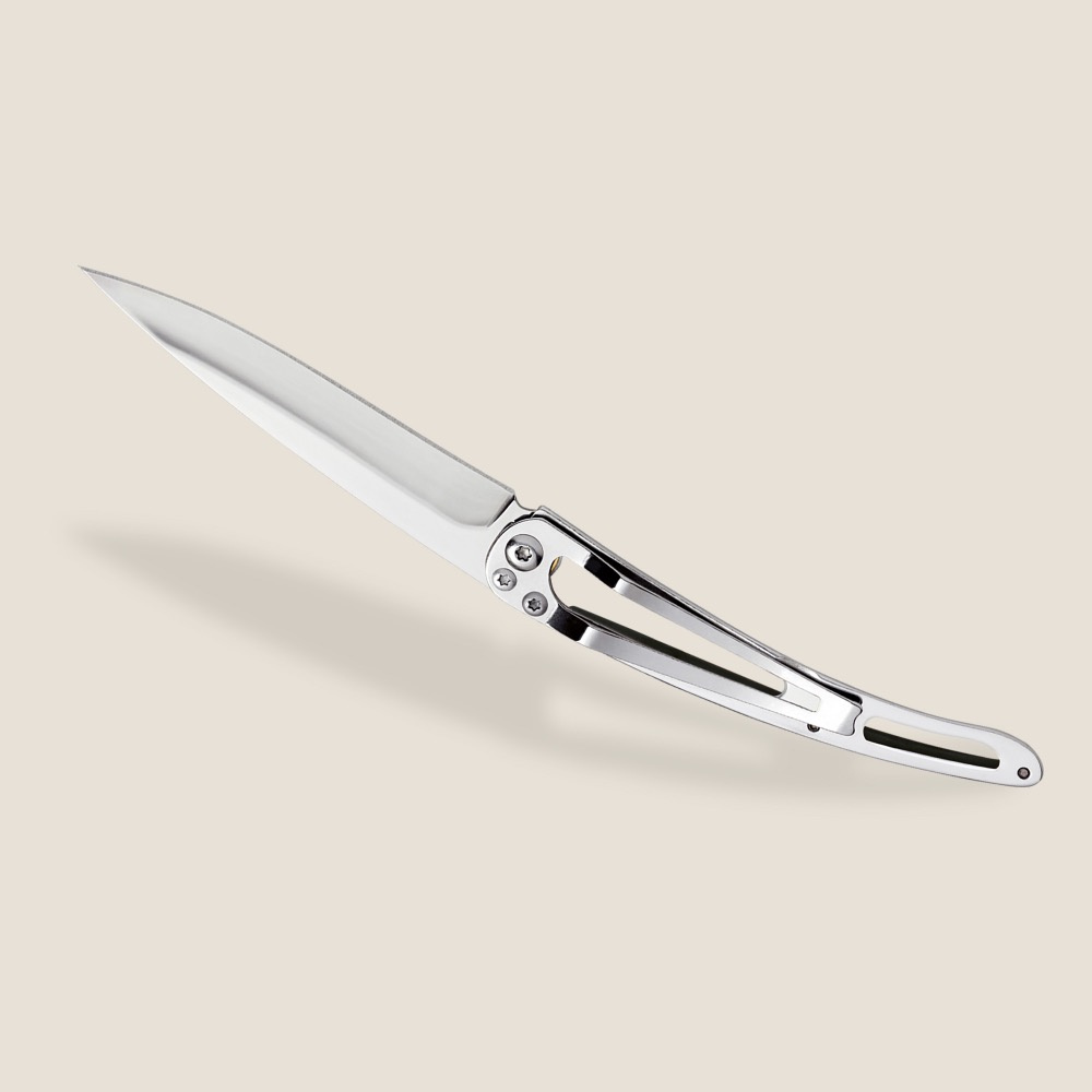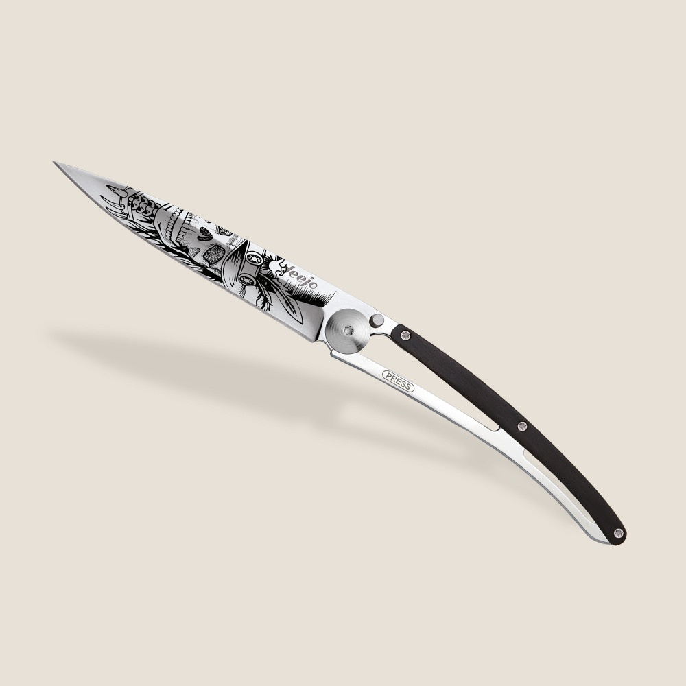 Stylový ultralehký nůž Deejo z kolekce Mirror se střenkou z ebenového dřeva a čepelí s vysokým leskeVíce