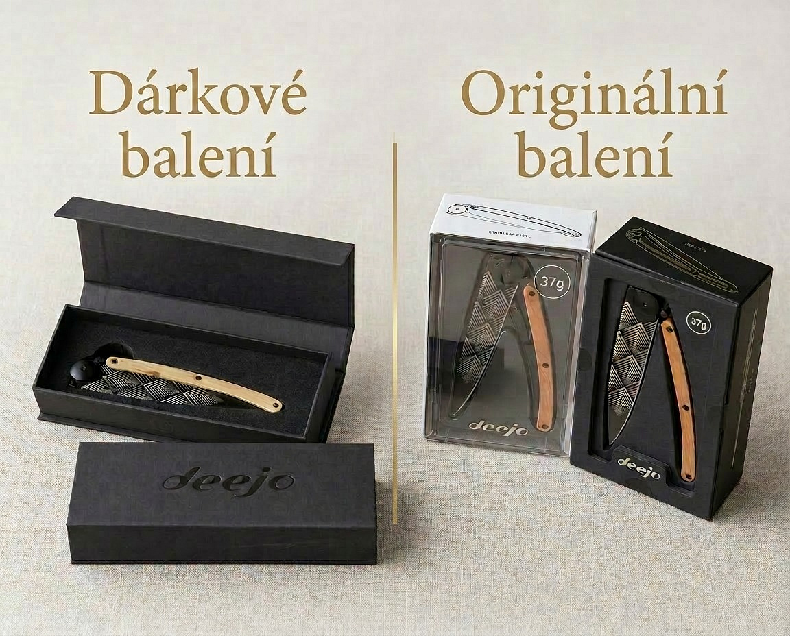 Stylový ultralehký nůž Deejo 37g z kolekce Mirror se střenkou z olivového dřeva a čepelí s vysokým l