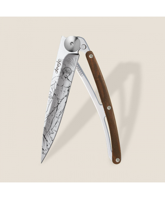 Stylový ultralehký nůž Deejo 37g z limitované série 999 kusů se střenkou z exotického dřeva snakewood a oboustranným tetováním Apollo.
