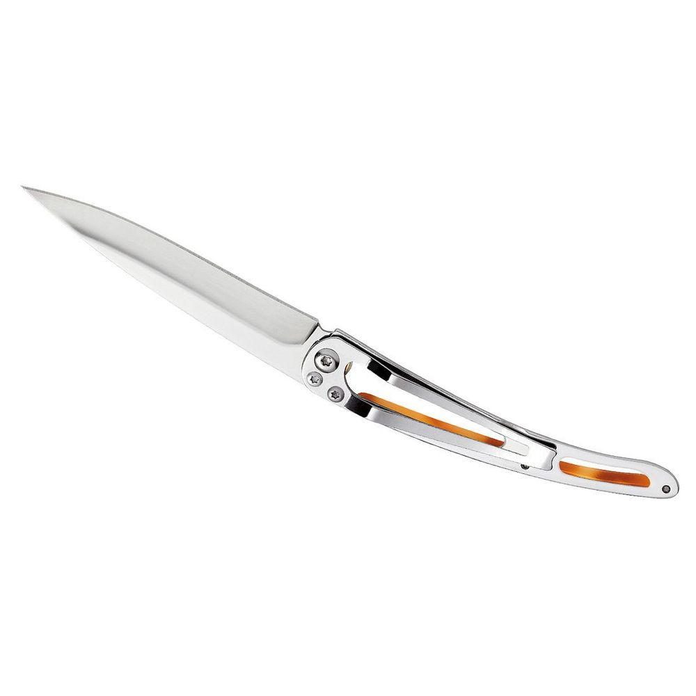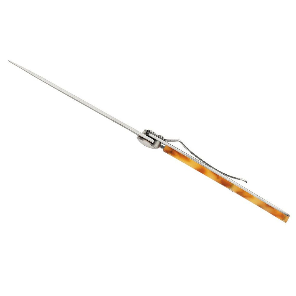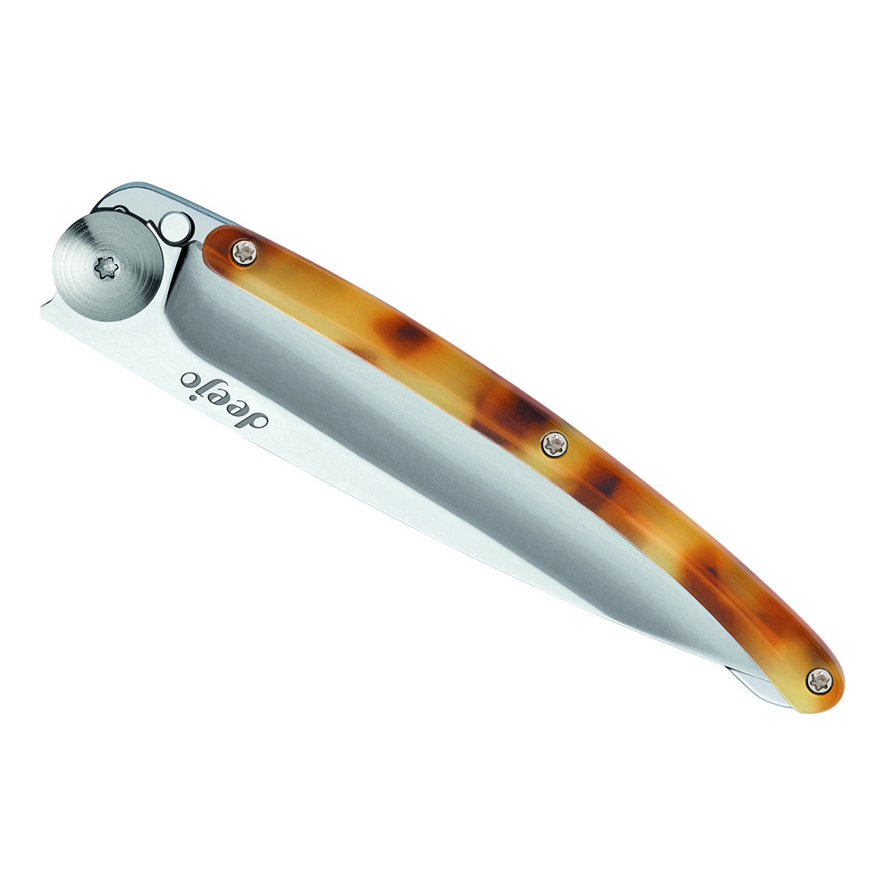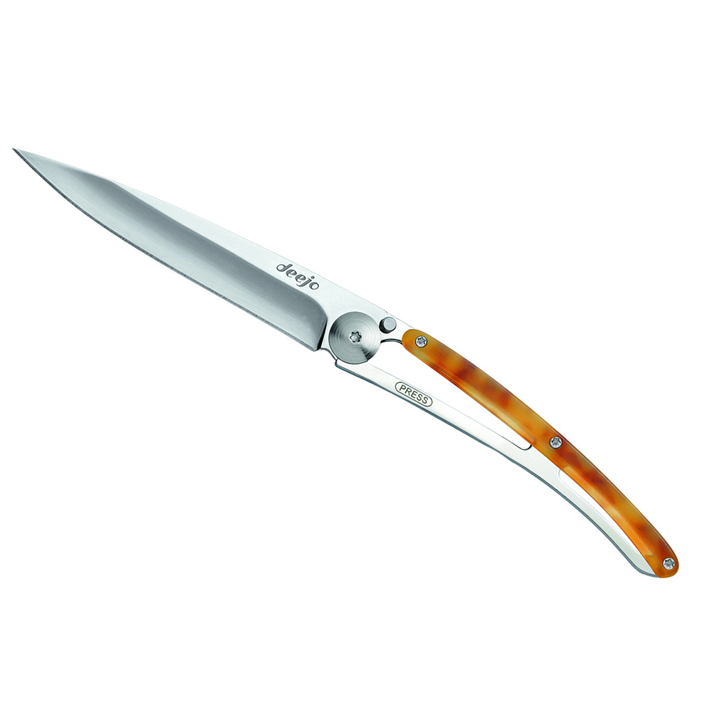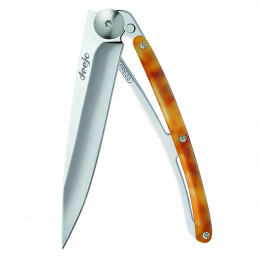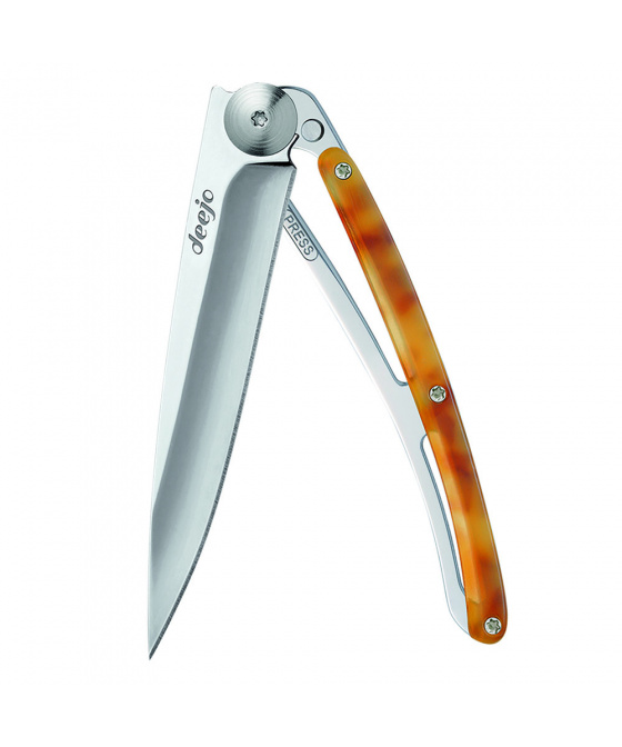 Stylový ultralehký nůž Deejo z kolekce Turtle se střenkou ze syntetické želvoviny a čepelí s vysokým leskem.