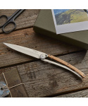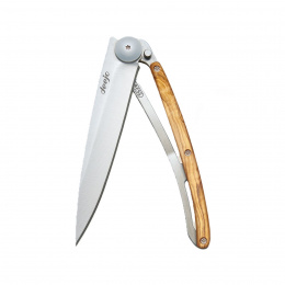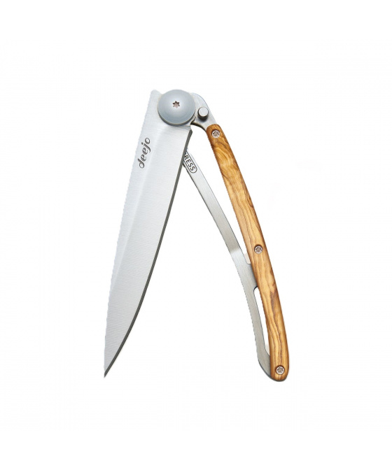 Stylový ultralehký nůž Deejo se střenkou z olivového dřeva.