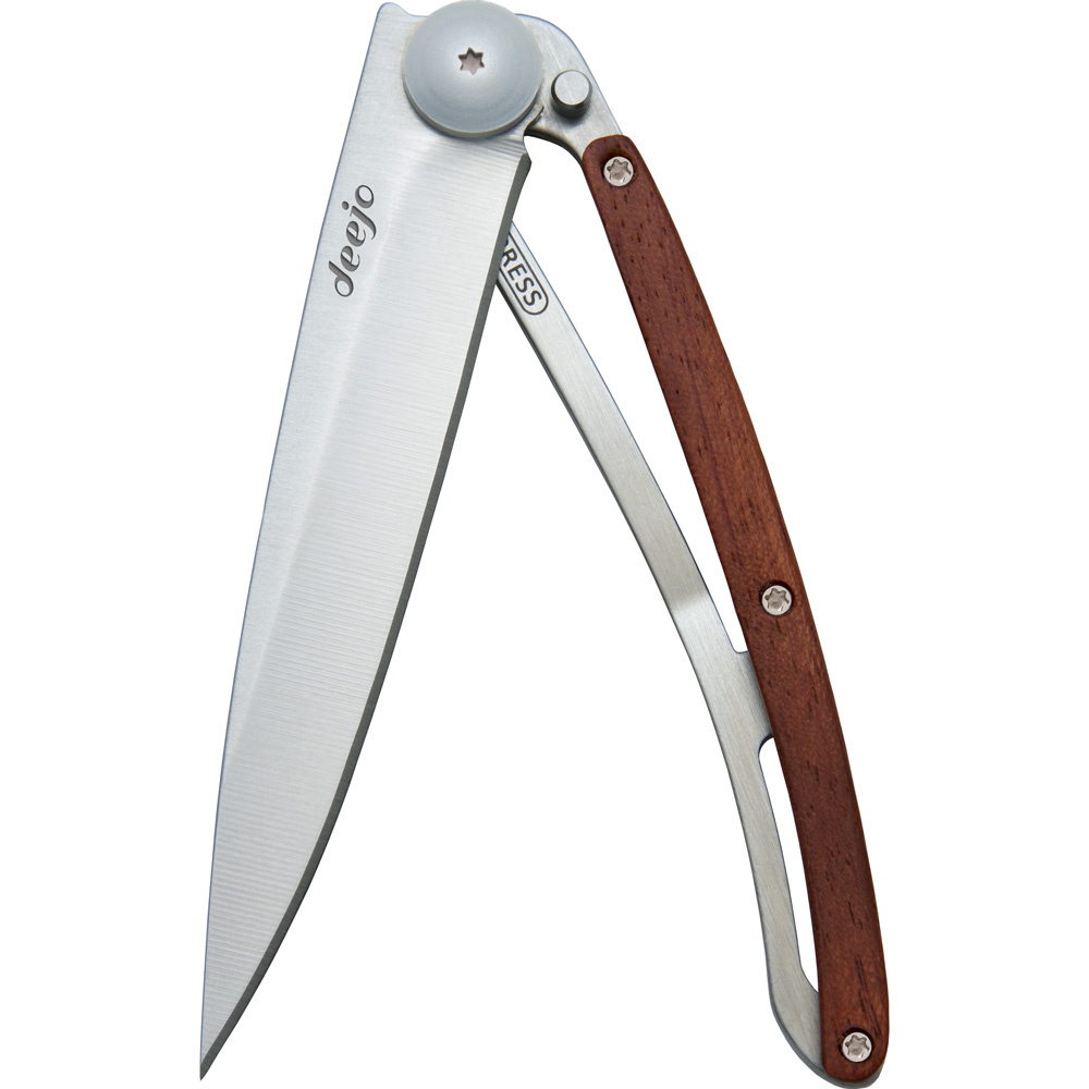 Stylový ultralehký nůž Deejo se střenkou z dřeviny coralwood.